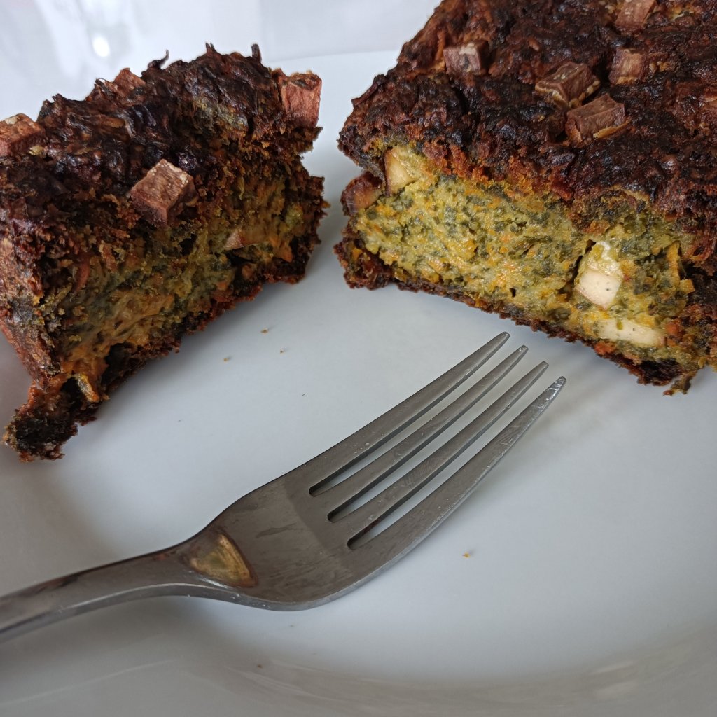 - Couper en petit cube le tofu. Réservez environ ⅓ à part pour le mettre sur le dessus du cake, à la fin.